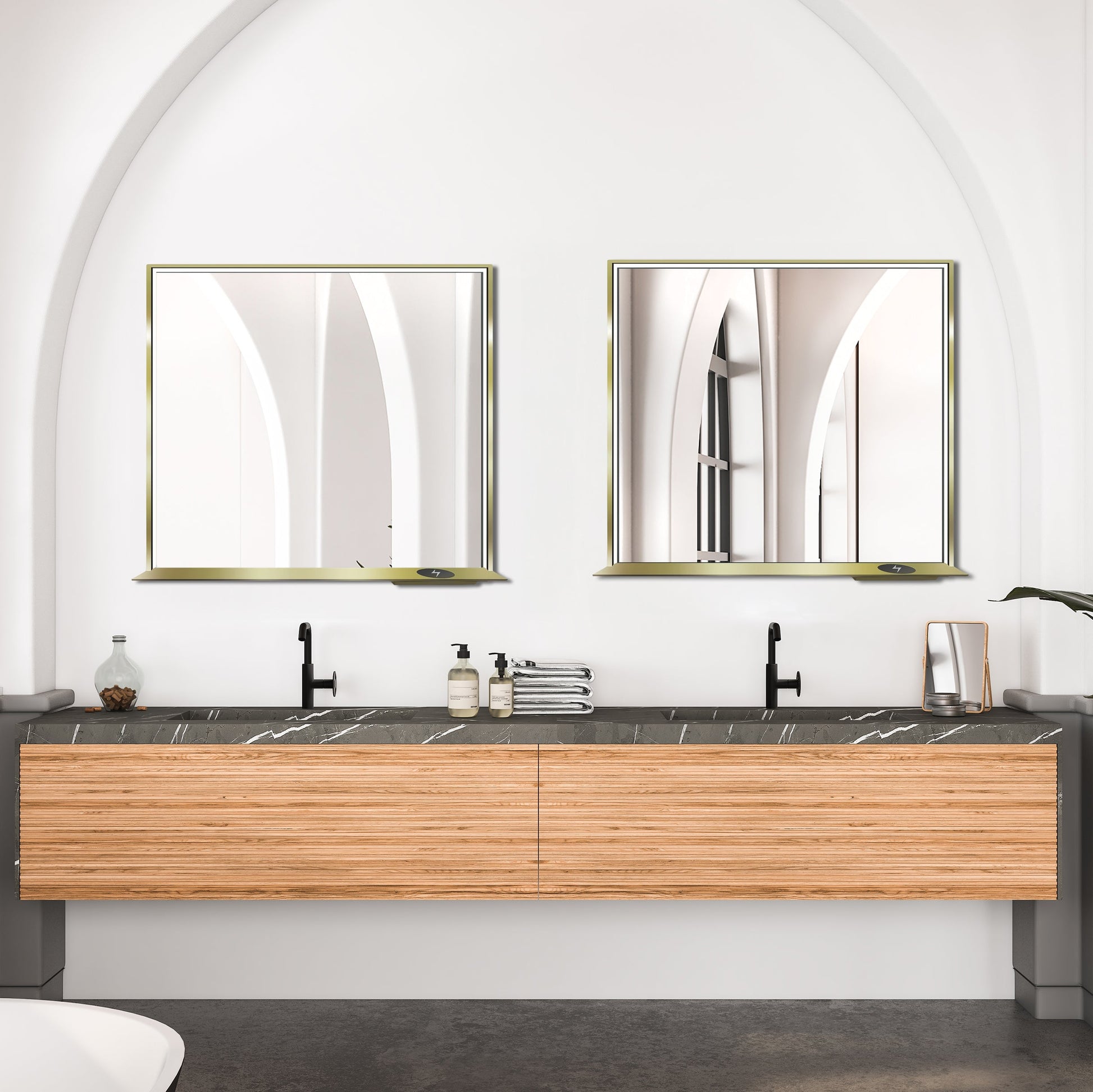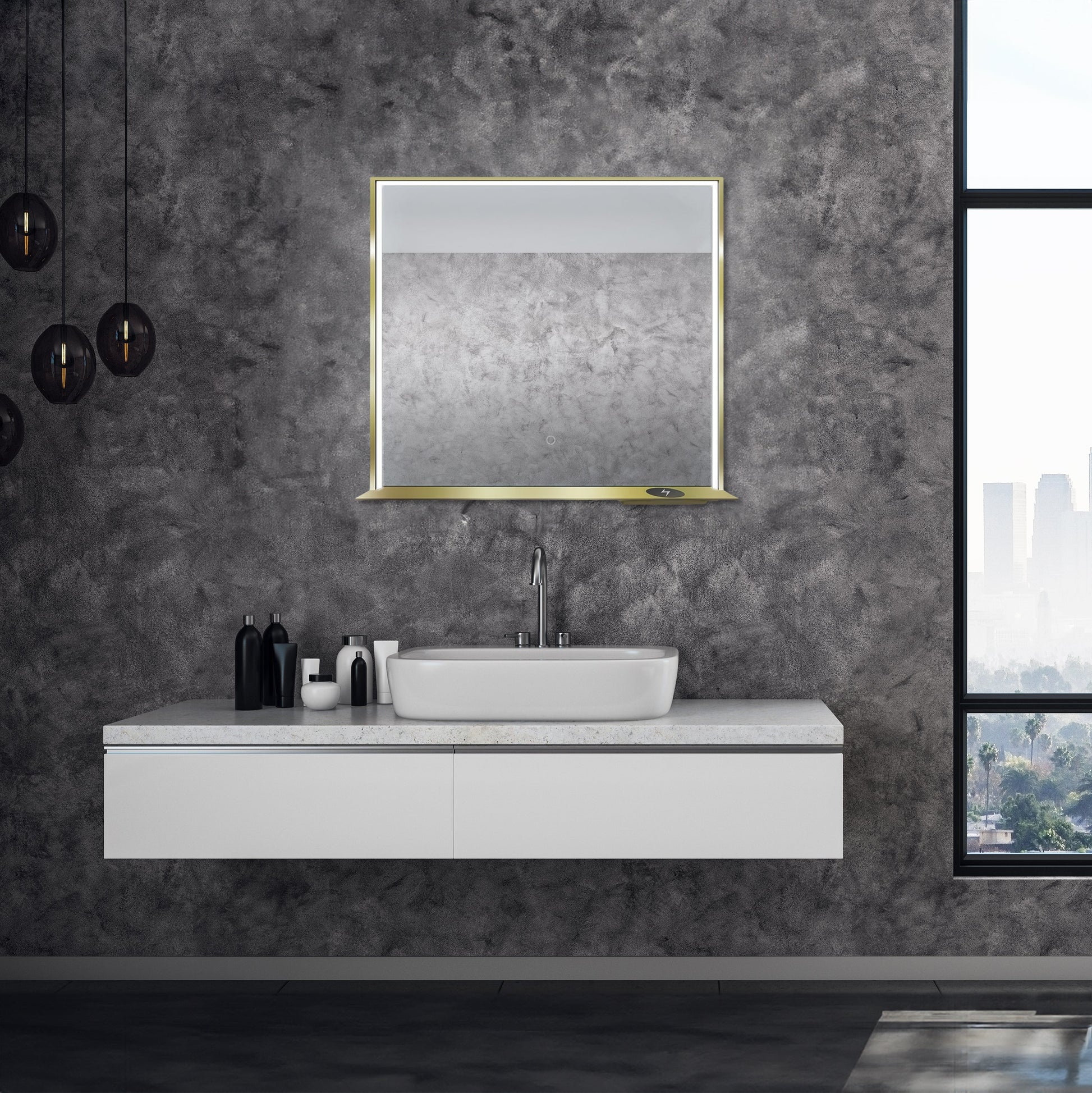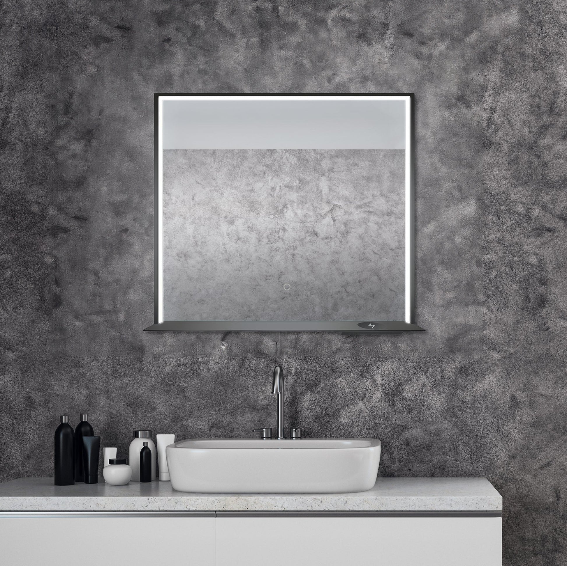 Allegra Metal-Framed Rectangular Wall Mirror with Shelf and Smart Features