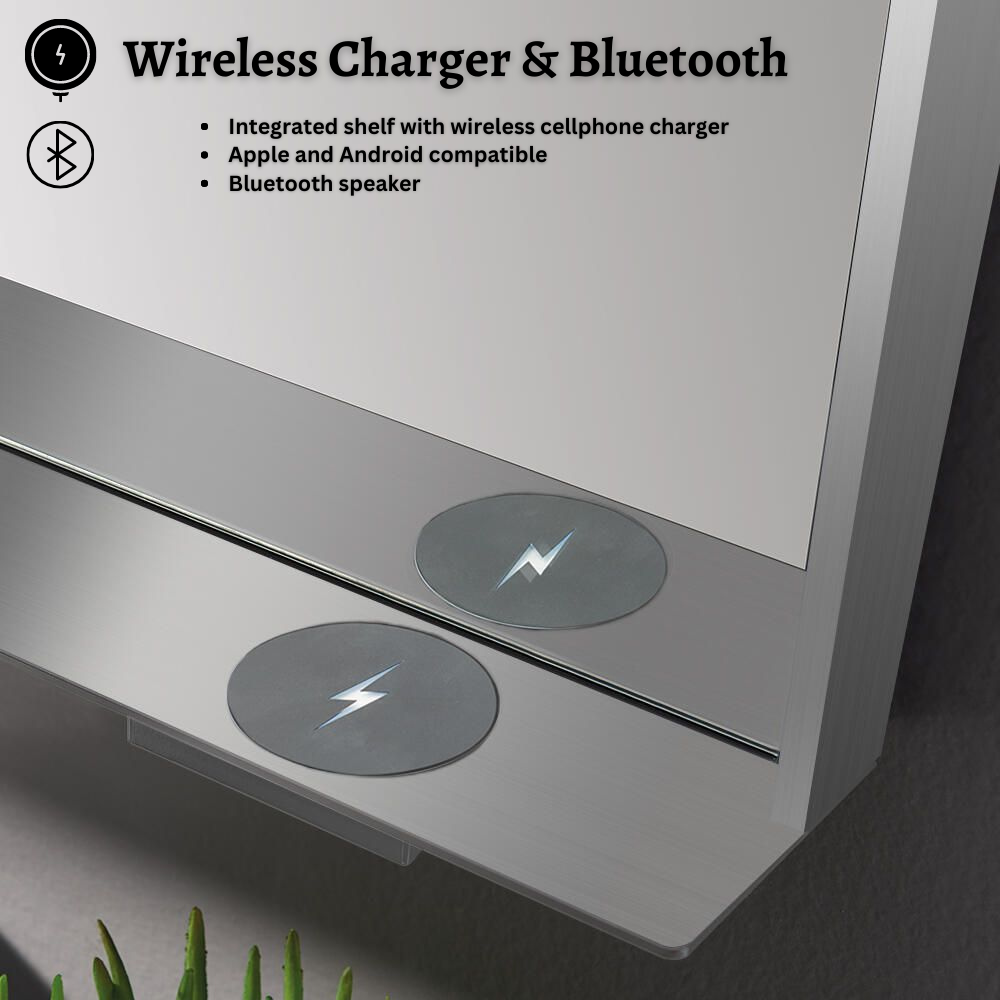 Allegra 36"W x 32"H Framed LED Mirror with Bluetooth Speaker and Wireless Cell Phone Charger - Available in 3 colors