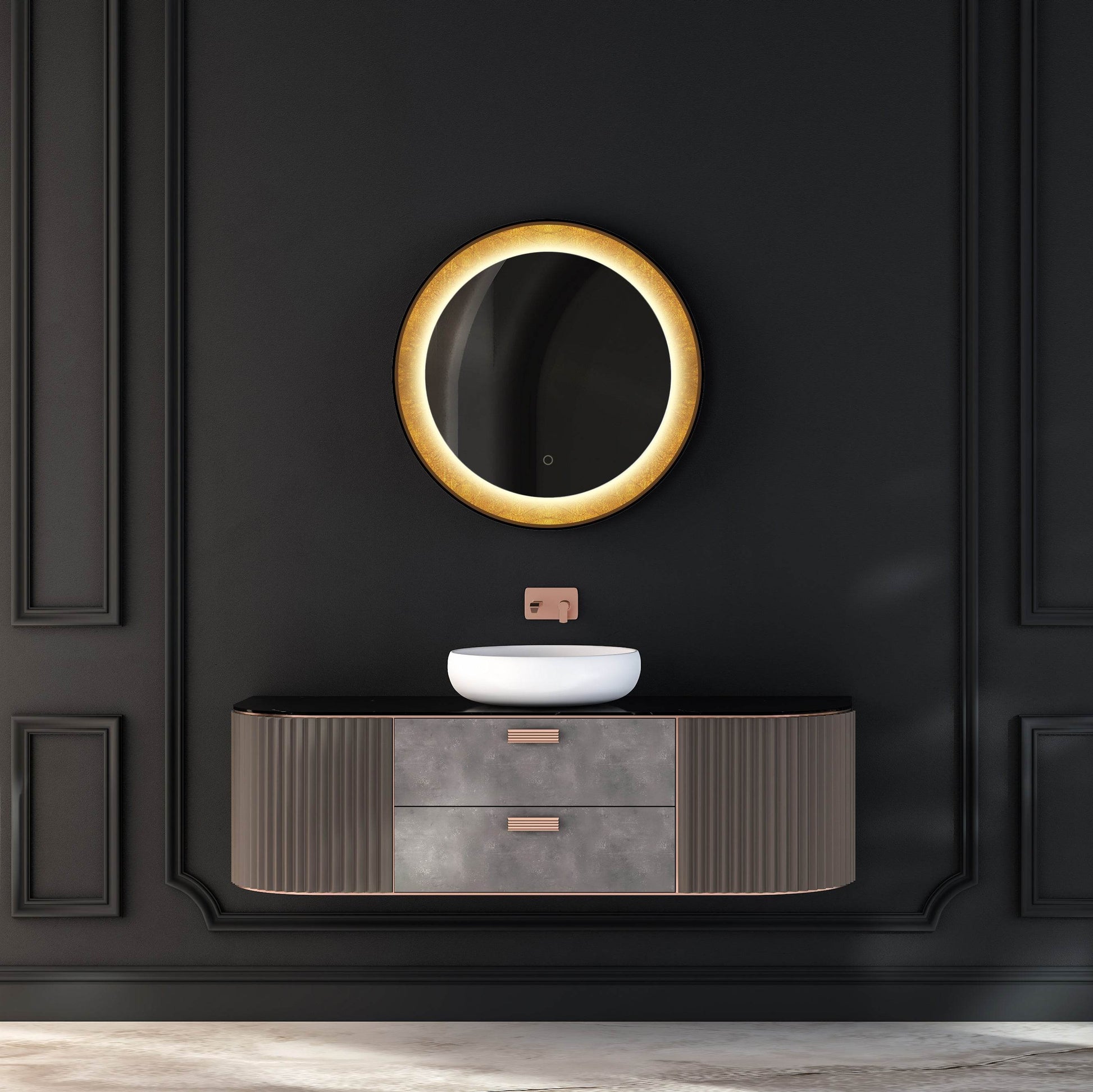 Natalya 30" Round LED Lighted Mirror with Gold Frosted Border